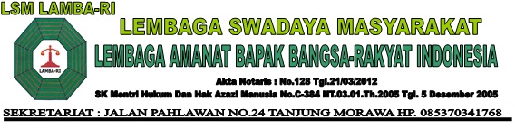 Nama : DPP (LSM LAMBA-RI) Lembaga Amanat Bapak Bangsa-Rakyat Indonesia.